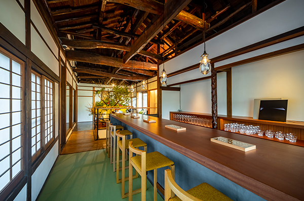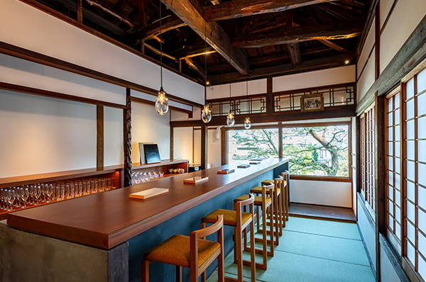 茶房バー28號室 和モダンを基調とした* カウンターには椋の一枚板を贅沢に配しました。 美観に優れるだけでなく、 本格的な炉を備えることも特徴。 心安らぐ“侘び寂び”のひとときを カジュアルにお楽しみいただけます。 *椅子の茶席 |