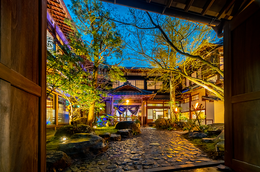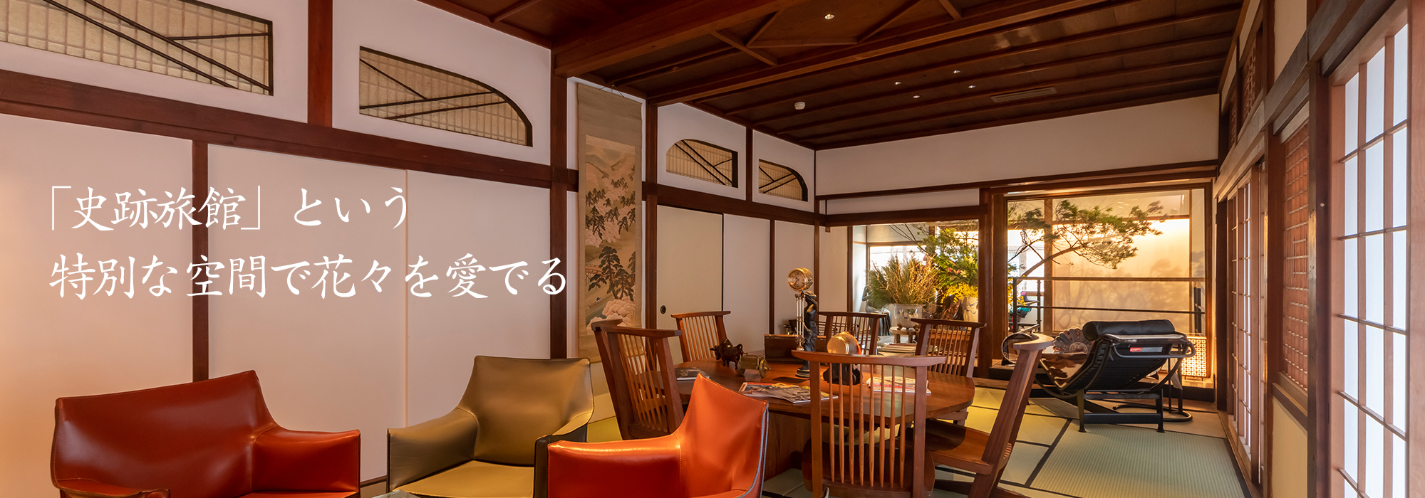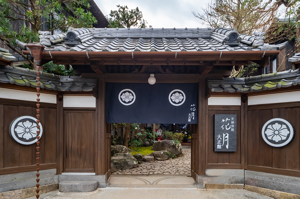 古式の建築様式と古材 史跡旅館「花月」は、歴史ある建物そのものが特別な魅力を放つ日本宿です。 廊下や梁、天井などの各所に現在では入手できない 銘木や古材が多く使われています。 歴史の息遣いする史跡旅館での時間そのものが、 皆さまにとって特別な休日となる はずです。 |